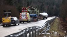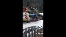 Ein Schwertransporter mit einem 70 Meter langen Rotorblatt eines Windrads kommt von der Straße ab. Die B294 bei Bad Wildbad ist voll gesperrt. Die Bergung wird wohl noch bis in den Nachmittag dauern.