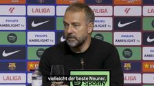 Hansi Flick findet nach dem 4:0-Sieg des FC Barcelona gegen Athletic Bilbao lobende Worte für Torschütze Robert Lewandowski. Für den Trainer ist der Stürmer immer noch auf einem Top-Niveau.