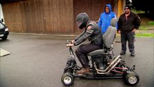 Jungfernfahrt für Helge Thomsen. Der GRIP-Testfahrer startet unter schwierigen Bedingungen seinen allerersten Testlauf mit einem getunten Mobility Scooter. Mit der Kiste will er den Speed-Weltrekord knacken und einen Eintrag ins Guiness-Buch der Rekorde erreichen. Wie verläuft der Ritt auf den Kanonenkugel? Das zeigt GRIP am Sonntag, 30. Oktober 2016, um 17:20 Uhr.