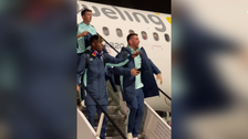 Die Spieler von Athletic Bilbao bespaßen sich mit dem Prager Schnee und liefern sich eine Schneeballschlacht.