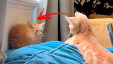 Vorsichtige Annäherungsversuche: Adoptiertes Kätzchen lernt Bruder kennen