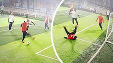 Fußballspieler stürmt auf leeres Tor zu – und trifft nur Luft