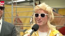 Schon fünf Wochen vor dem Beginn des Straßenkarnevals trifft man in der Halle Münsterland auf kostümierte Zeitgenossen - und die sitzen auch noch auf Pferden.