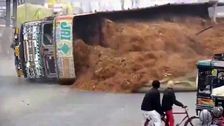 Überladener Lkw kippt auf Jeep - ein Toter