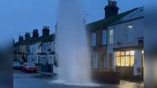 In Großbritannien schießt eine Wasserfontäne sechs Meter in die Höhe. Grund dafür ist ein defekter Hydrant an einer Kreuzung. Die Straßenkreuzung ist bis Donnerstag gesperrt.