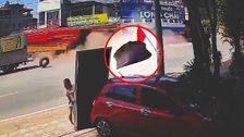 Ein Passant in Ho-Chi-Minh-Stadt in Vietnam hatte gleich doppeltes Glück, als der Reifen eines Lastwagens beim Abbiegen explodierte. Trümmerteile der Felge verfehlten den Mann nur knapp – gleich zwei Mal.