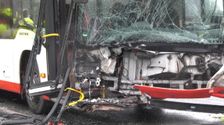 Im Norden des Ruhrgebiets stoßen ein Bus mit vielen Schülern und zwei Autos zusammen. Drei Erwachsene werden verletzt, alle Kinder kommen mit dem Schrecken davon.