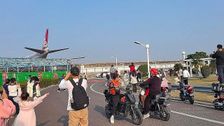Chaos am Flughafen: Startender Jet fegt Zuschauer fast weg