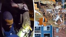 In Atlanta im US-Bundesstaat Georgia trafen Polizisten nach einer Explosion an einem völlig zerstörten Haus ein. Mitten in den Trümmern fanden die Beamten einen Bewohner und brachten den Mann rechtzeitig ins Freie.