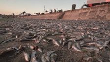 Philippinen: Massenhafte Anzahl von Sardinen am Strand verstreut