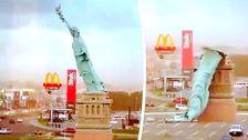 Mächtige Böen fegten während eines Unwetters durch Guaíba in Brasilien. Eine Replika der Freiheitsstatue konnte dem Sturm nicht standhalten.