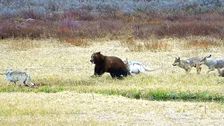 Mutiges Rudel: Grizzlybär hat es auf Beute abgesehen – Wölfe schlagen zurück