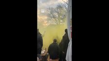 Mit Pyro und Bengalos: Maccabi-Fans feiern im Schlossgarten