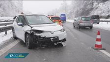 Winterchaos auf Bayerns Straßen: Bei dichtem Schneefall krachten auf der A95 bei Wolfratshausen gleich mehrere Fahrzeuge ineinander - glücklicherweise blieb es größtenteils bei Blechschäden.