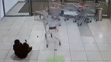 Um Einkaufswägen eine Etage tiefer zu bringen, nutzte ein Mitarbeiter das Rollband. Doch die Wägen rollten unkontrolliert, verletzten eine Kundin und zerschlugen eine Glaswand.