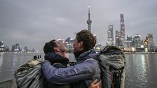 Einhalb Jahre zu Fuß unterwegs: Franzosen in Shanghai angekommen