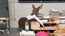 Reh stürmt Klassenzimmer und verschlingt Prüfungsunterlagen