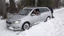 Schneesturm blockiert Auto in NRW