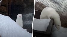 Artemis, der Nerz, spielt im Schnee im John Ball Zoo in Michigan, USA. (Bildnachweis: John Ball Zoo/TMX)