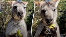 Waru, das Wallaroo, frisst einen Apfel im Oakland Zoo in Kalifornien. (Bildnachweis: Oakland Zoo/TMX)