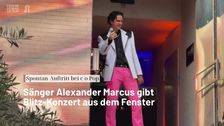 13 Minuten lang beschallte Sänger Alexander Marcus bei seinem Spontankonzert im Rahmen der c/o Pop die Bartholomäus-Schink-Straße in Ehrenfeld.