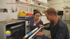 SAT.1-Reporterin Martina Beils und Technik-Experte Steffen Wangerow schauen sich heute Martina Spülmaschine an: Hier gibt es ein Problem mit dem Klarspülerfach. Finden die beiden den Fehler an der Maschine?
