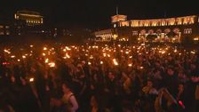 Ein Kleinflugzeug kollidiert mit einem Hochspannungsmasten und geht zu Boden. Eine Dash-Cam filmte den Unfall.