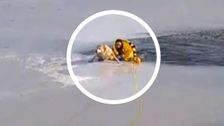Herzerwärmende Hunderettung in Sparta im US-Bundesstaat New Jersey: Ein Vierbeiner war auf einem See durch das Eis gebrochen – ein mutiger Polizist machte sich auf den Weg.
