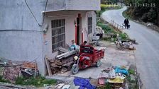 China: Chinesischer Fahrer verliert auf Gefällestrecke die Bremsen und weicht aus, um älteren Mann nicht zu treffen