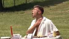 Bei diesem Spiel müssen die Teilnehmer seltsame Gerichte aufessen.