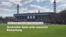 Massives Polizeiaufgebot und Wasserwerfer beim Hochrisiko-Derby zwischen dem 1. FC Köln und Borussia Mönchengladbach.