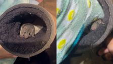Moment, in dem eine Frau während eines Campingausflugs eine Maus in ihrem Stiefel entdeckt