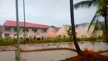Schockmoment für Schüler und Lehrkräfte in der indonesischen Provinz Aceh: Ein riesiges Schulgebäude krachte in einen Fluss – nach tagelangen Regenfällen hatte Hochwasser das Ufer unterspült.