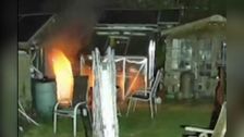 Eine Explosion setzt diesen Gartenschuppen in der englischen Grafschaft Nottinghamshire in Brand. Ausgelöst wurde die Explosion durch den Akku eines E-Bikes.