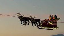 Fliegender Weihnachtsmann über dem Weihnachtsmarkt in Montreux