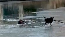Im Eis eingebrochen: Treuer Border Collie will Herrchen mit Ast retten