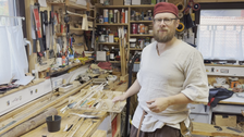 Bogenbauer Wolfgang Klein lernt den Bögen das Biegen