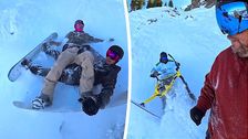 Wintersportler waren in Kirkwood im US-Bundesstaat Kalifornien auf einer steilen Piste unterwegs. Plötzlich wurde die Abfahrt zur Slapstick-Einlage.