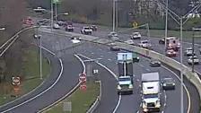 Ein Muldenkipper kollidierte mit einem Überkopfschild auf der I-70, wodurch dieses einstürzte. Es wurden keine Verletzungen gemeldet.