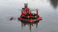 Die Wasserwacht Vilshofen und der städtische Bauhof ließen den schwimmenden Adventskranz in die Vils.