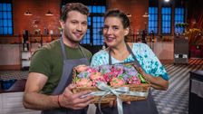 Beim Cupcake-Blumenstrauß geht Raúls Buttercreme baden - Team-Partnerin Elena findet's "ekelhaft". Trotz des Malheurs stellen sie sich mit mutiger Pose der Verkostung. Doch geschmacklich wird es krümelig-knusprig. Das wirft Fragen bei der Jury auf.