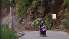Ein Erdrutsch ist auf eine Straße auf den Philippinen gekracht. Ein Motorradfahrer befand sich dabei nur wenige Meter entfernt.