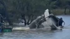 Mehrere Ranger sind mit Booten unterwegs, um Nilpferde umzusiedeln. Eines der Tiere taucht plötzlich direkt unter einem Boot auf und bringt dieses zum Kentern.