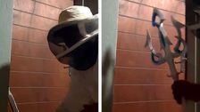 Schräger Moment in Gauteng in Südafrika: Ein Mann rüstete sich mit einem Imkeranzug und einem Spielzeug-Dreizack aus, um eine Fledermaus aus dem Haus zu jagen. Allerdings spielte sein Gleichgewicht nicht mit.