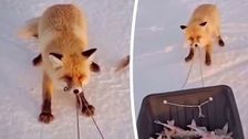 Dreister Diebstahl: Fuchs will Schlitten voller Fische klauen