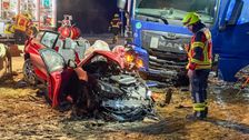 Auf der Bundesstraße 85 kommt es zu einem schweren Unfall: Ein Auto fährt auf die Gegenspur - und wird von einem entgegenkommenden Lastwagen gerammt.