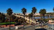 Erleben Sie die historische Grenzregion Extremadura aus der Vogelperspektive mit diesem atemberaubenden Drohnenvideo von Badajoz, Spanien. Bewundern Sie die strategische Schönheit der Stadt und gleiten Sie über die gewaltige Alcazaba von Badajoz, eine der größten maurischen Festungen Europas, mit ihren alten Mauern und dem ikonischen Espantaperros-Turm, der den Fluss Guadiana überragt.