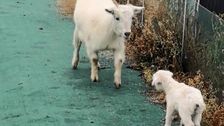 Zwei Passanten fanden ein einzelnes Lamm und hoben es hoch, damit sein Blöken weiter zu hören war. Augenblicke später erschien das Mutterschaf und rannte los, um sich wieder mit ihrem Lamm zu vereinen.