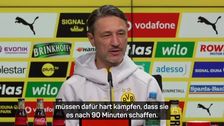 BVB-Trainer Niko Kovač analysiert die Diskrepanz zwischen den beiden Halbzeiten bei seiner Mannschaft. Der Kroate lobt die Fähigkeit, sich in der zweiten Halbzeit zu steigern und meint, nur ein Team könne über 90 Minuten dominieren.