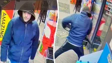 Ein stümperhafter Einbrecher wurde auf Überwachungskameras gefilmt, wie er mit Bier und Schokolade in seinem Mantel im Geschäft gefangen war. Er versuchte, eine Glastür mit einem Hocker einzuschlagen, konnte sie aber nicht aufbrechen und starrte in Panik in die Überwachungskamera. Der Diebstahl ereignete sich am 20. Dezember an einer Tankstelle in der Pedmore Road, Lye, in der Nähe von Stourbridge, West Midlands.